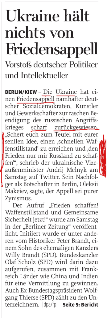 Melnyk hält nichts vom Friedensapell-